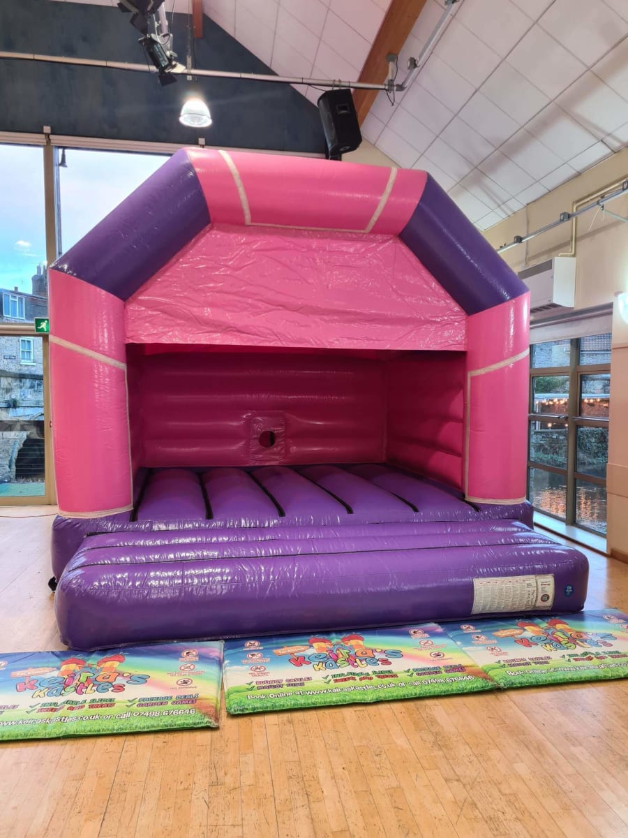 Here is our pink and purple bouncy castle suitable for both children and adults. One of our larger castles measuring 15ft wide, 15ft long and 12ft high.