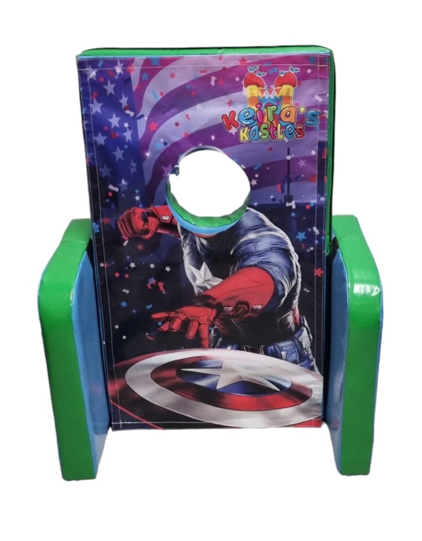 New for 2024, A great addition to any party this peekaboo board. With our Captain America velcro design people can place their heads in the cut out and pretend to be Captain America himself, ideal for photos of your memorable day.