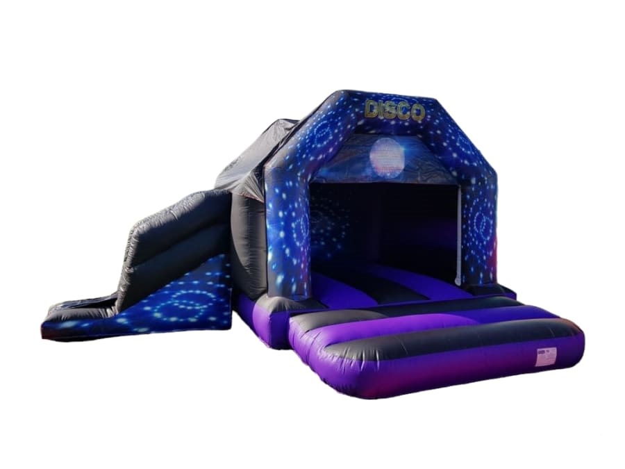 All the fun and enjoyment from a disco bouncy castle with a slide too!